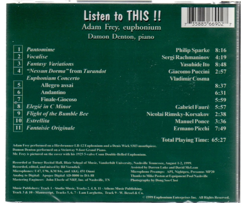 Adam Frey euphonium & Damon Denton piano - Listen To This! (brand new ...