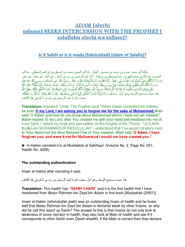 Intercession Adam of Through Holy Prophet Muhammed Peace and Blessings ...