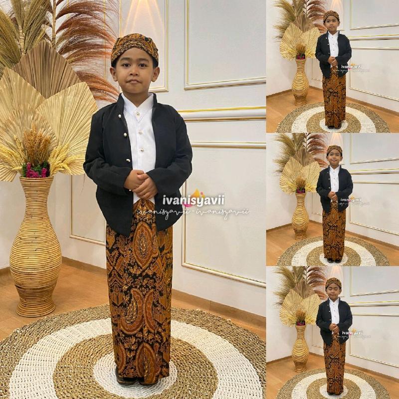 (1Set Anak Cowok) Adat Jawa Hewes / Beskap + Jarik + Blangkon + Benggol ...
