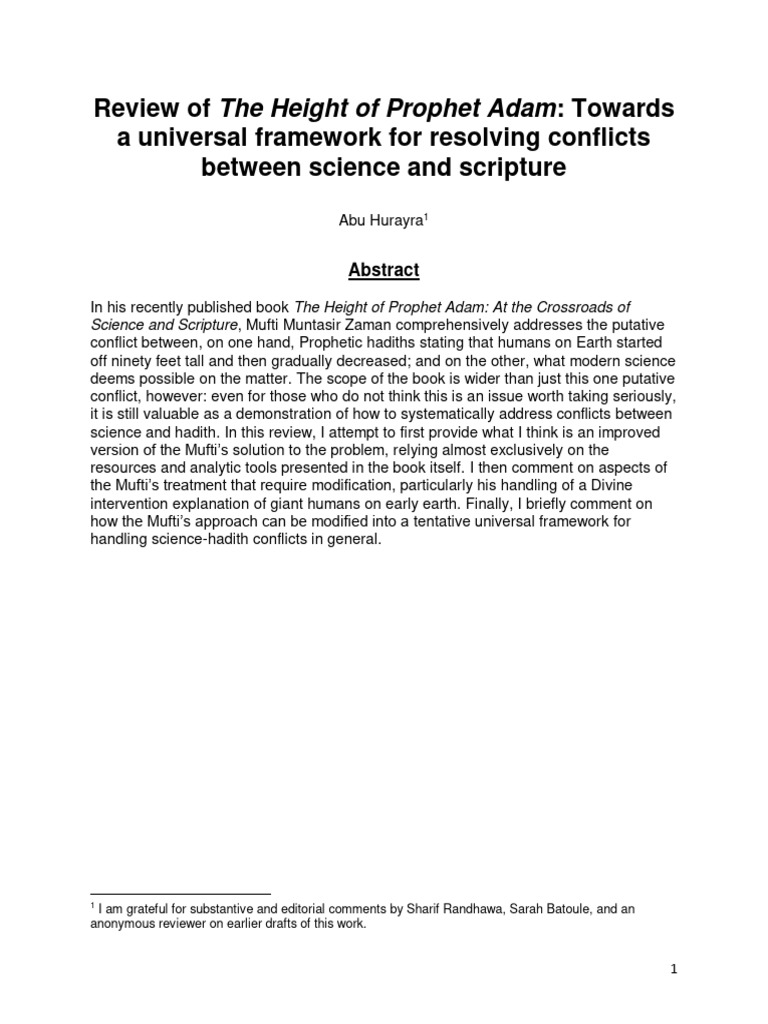 (PDF) Osvrt na knjigu The Height of Prophet Adam