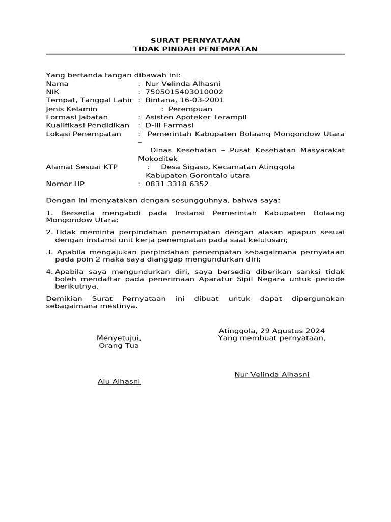 SURAT PERNYATAAN TIDAK MENGAJUKAN PINDAH-Ikdal | PDF | Politik | Hukum