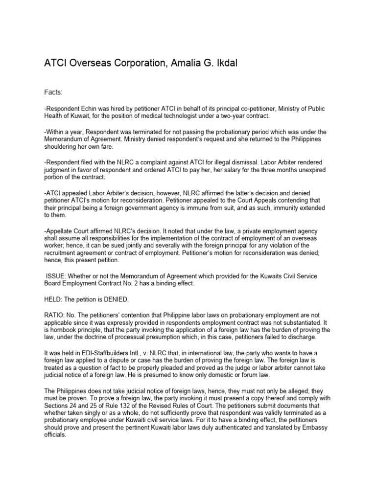 Illegal Dismissal Case: ATCI vs. Echin | PDF | Lawsuit | Judiciaries