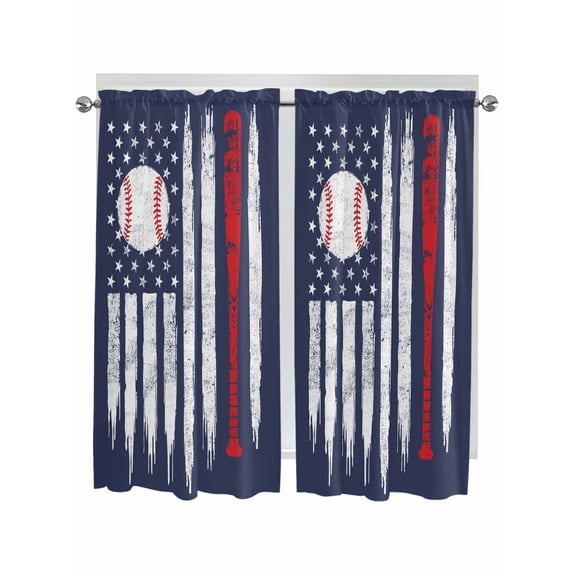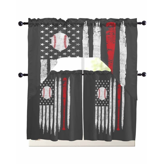 American Flag Kitchen Curtains 63 Inch Length, US Flag Baseball Stars ...