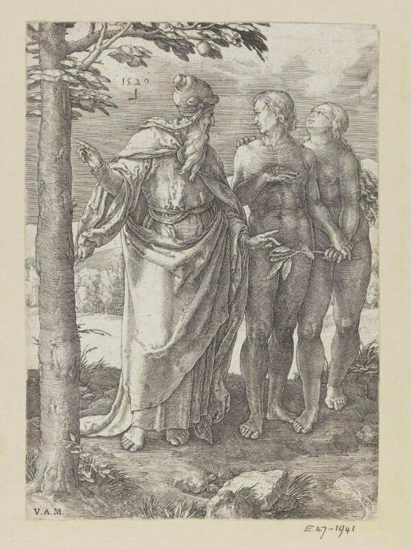 The first prohibition, Lucas van Leyden, 1529 print God points Adam and ...
