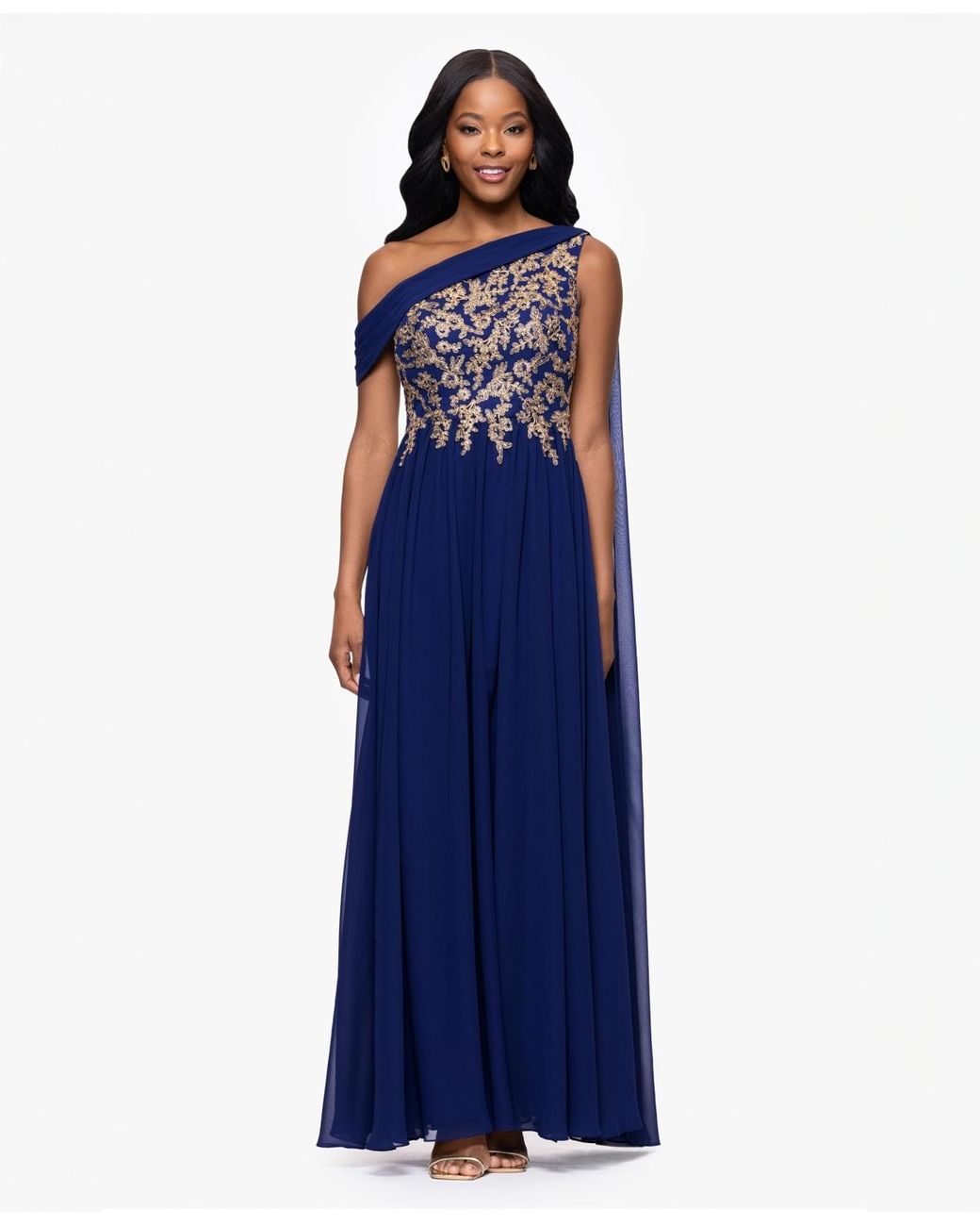 Betsy & Adam Embellished Appliqué-trimmed Gown in Blue | Lyst