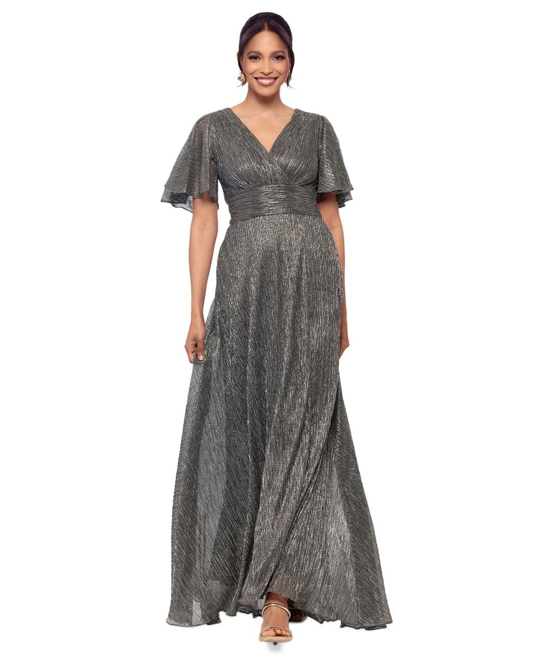Betsy & Adam V-neck Flutter-sleeve Metallic Dress in Brown | Lyst