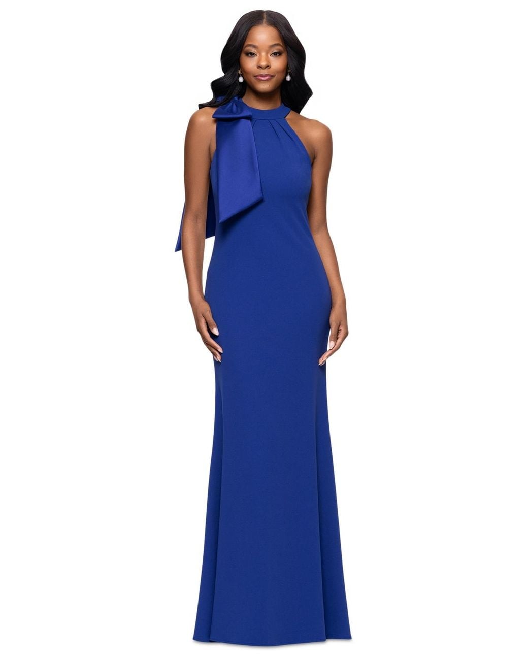 Betsy & Adam Bow-embellished Halter Neck Sleeveless Gown in Blue | Lyst