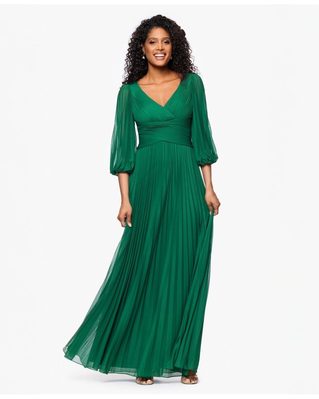 Betsy & Adam Pleated Balloon-sleeve Long Dress in Green | Lyst
