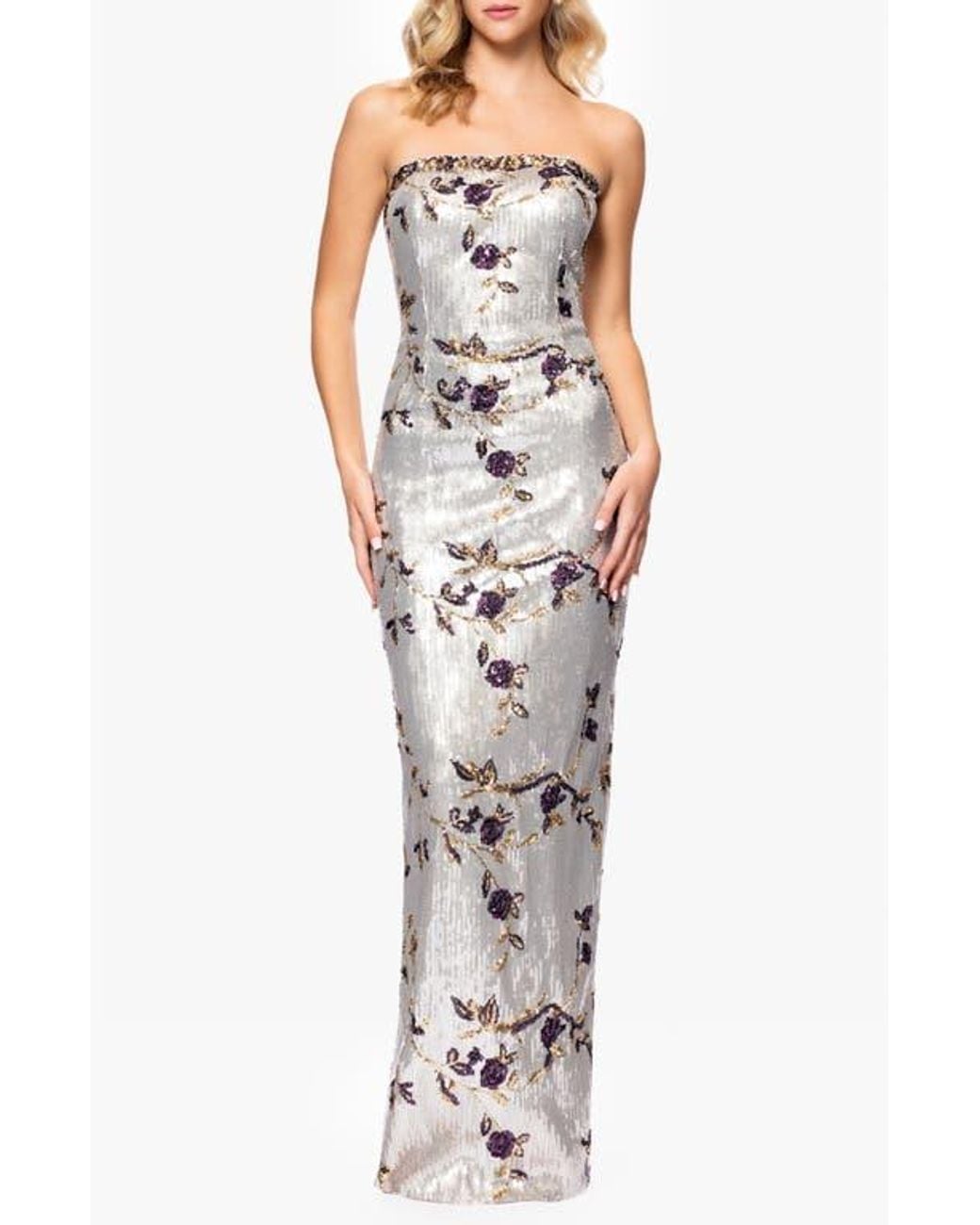Betsy & Adam Sequin Floral Strapless Sheath Gown | Lyst