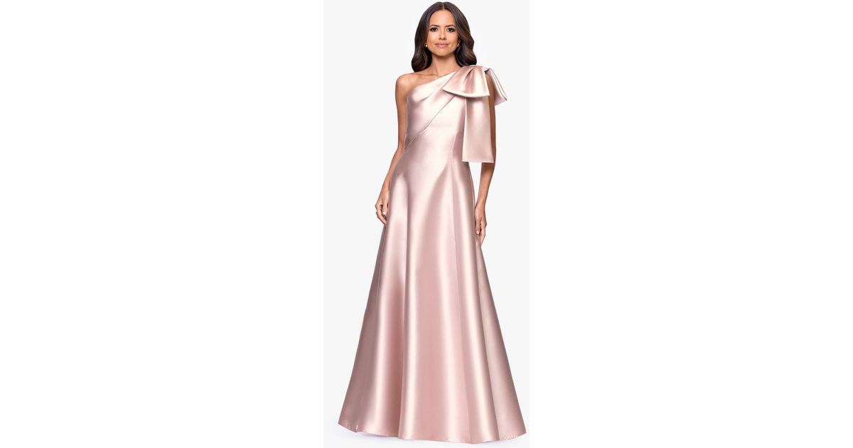 Betsy & Adam One Shoulder Ball Gown in Pink | Lyst