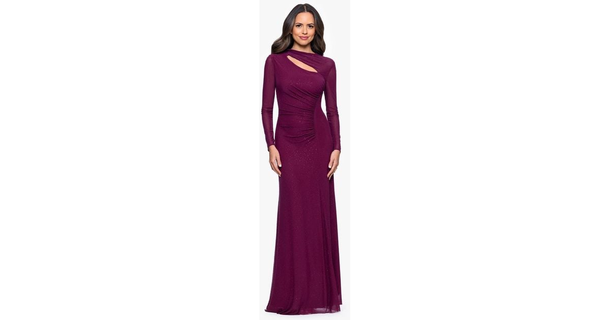 Betsy & Adam Long Keyhole Neck Gown in Purple | Lyst