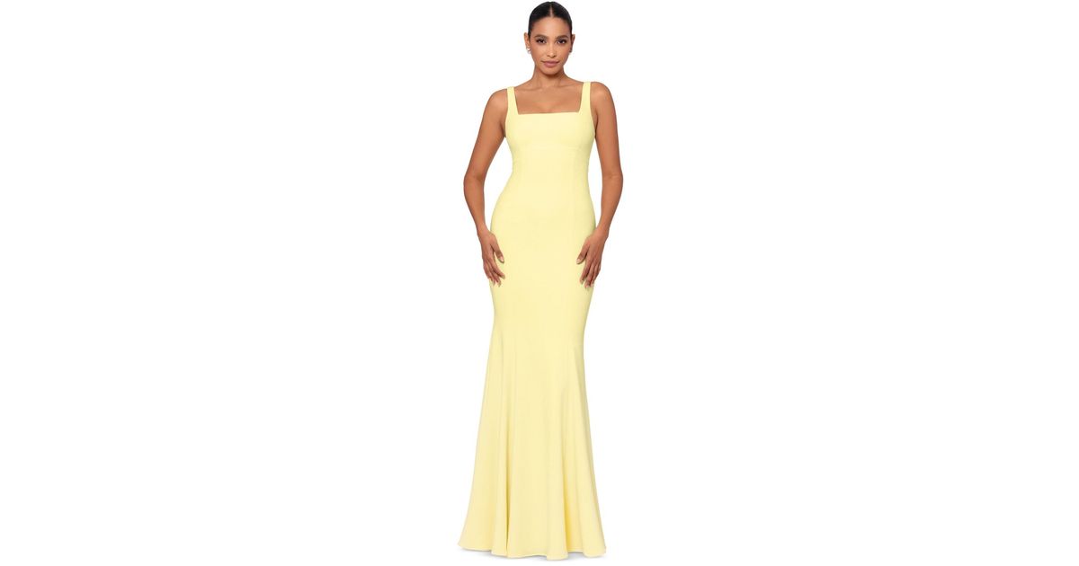 Betsy & Adam Square-neck Sleeveless Gown in Metallic | Lyst