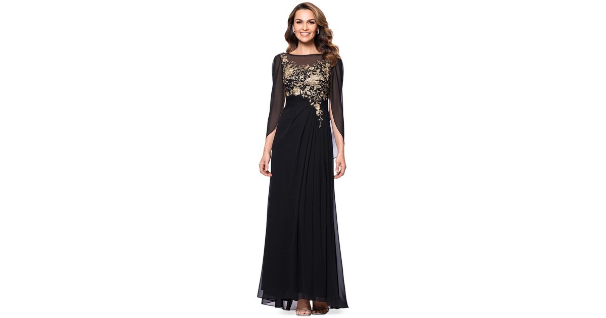 Betsy & Adam Embroidered Cape-sleeve Gown in Black | Lyst