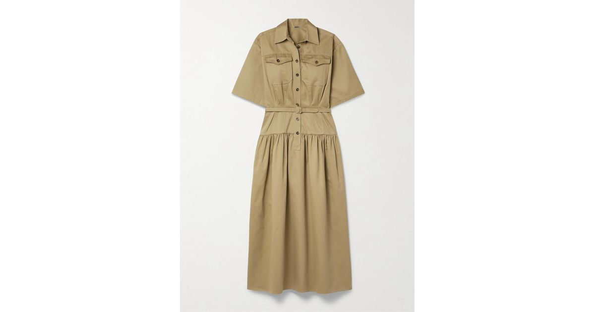 Adam Lippes Edie Belted Cotton-Twill Midi Shirt Dress in Natural | Lyst