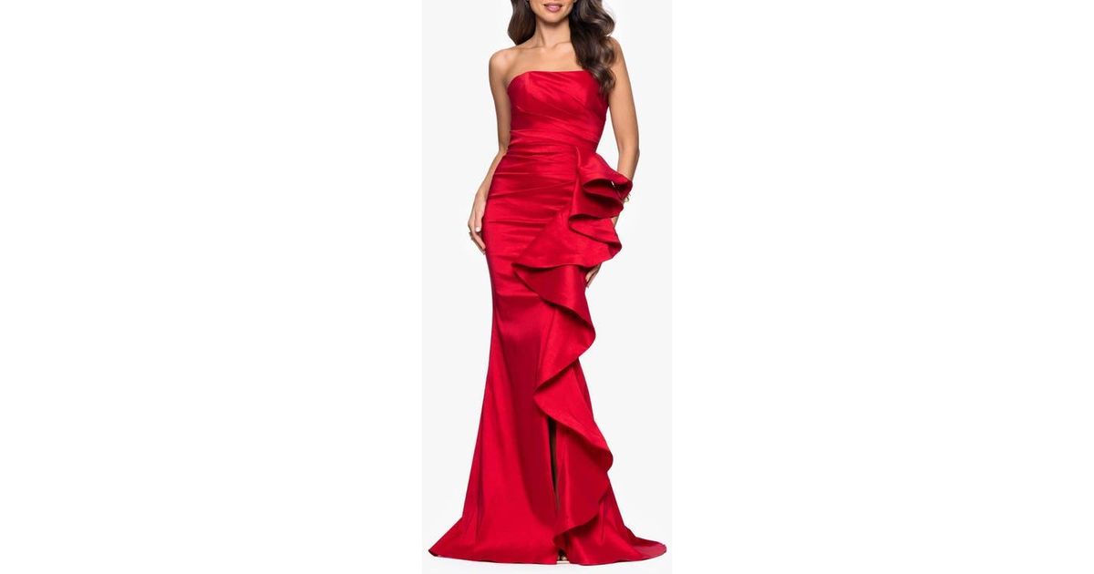 Betsy & Adam Strapless Cascade Ruffle Gown in Red | Lyst