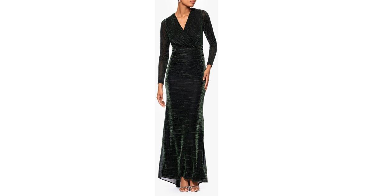 Betsy & Adam Metallic Long Sleeve Ruched Gown in Black | Lyst