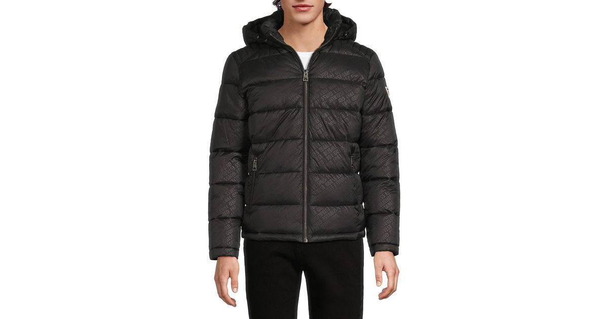 Guess Adam Quilted Hooded Puffer Jacket in Black for Men | Lyst UK