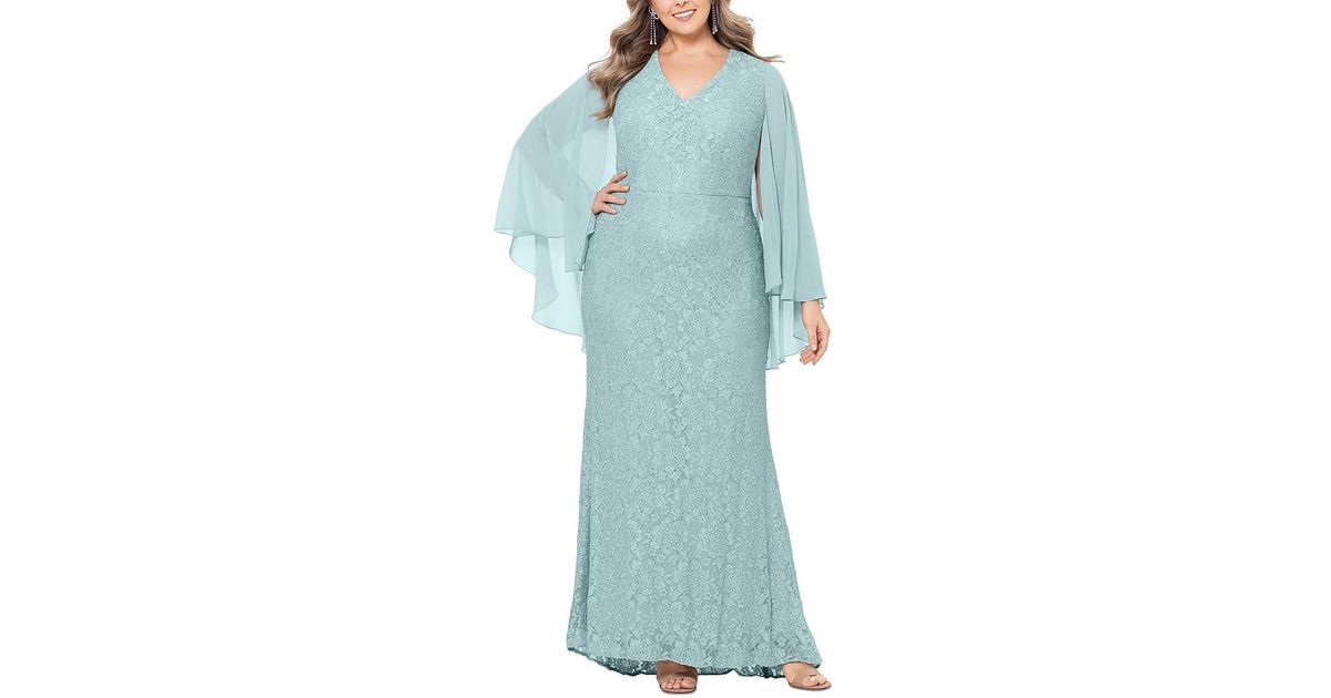 Betsy & Adam Plus Lace Capelet Evening Dress in Blue | Lyst