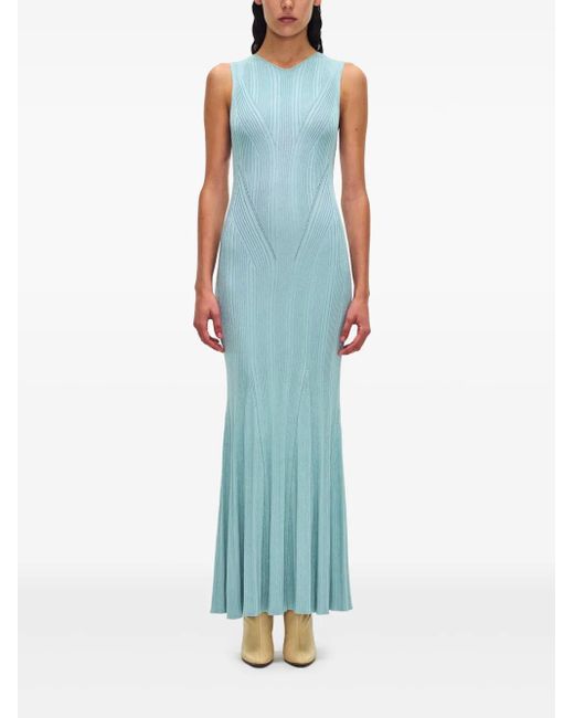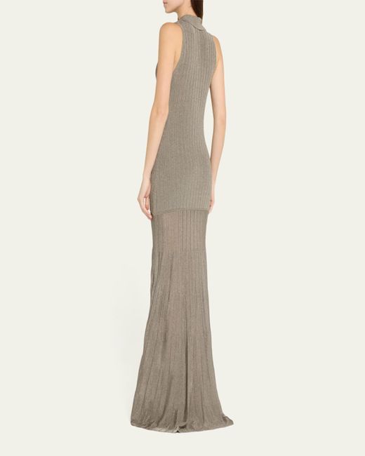 Adam Lippes Tashi Metallic Ribbed Maxi Dress in Natural | Lyst