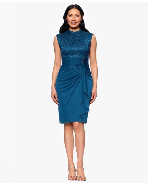 B & A by Betsy and Adam Lace Ruched Dress in Blue | Lyst