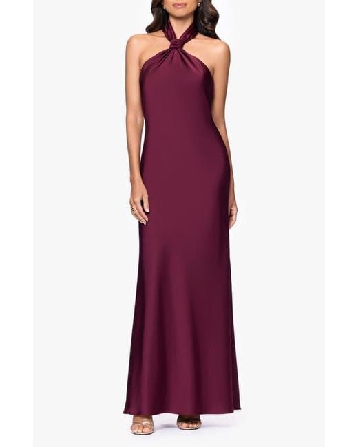 Betsy & Adam Satin Halter Dress in Red | Lyst