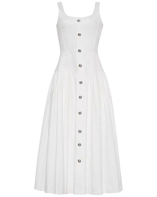 Adam Lippes Cassie Button-Embellished Denim Midi Dress in White | Lyst