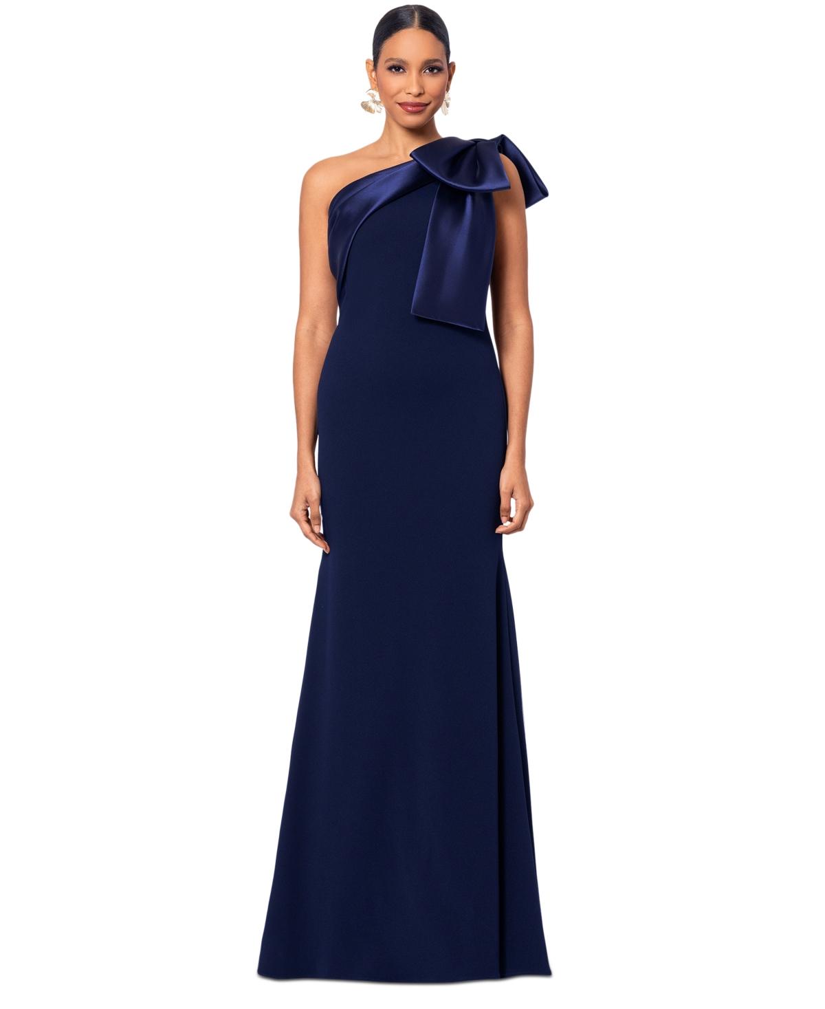 Betsy & Adam Bow-trimmed One-shoulder Gown in Blue | Lyst