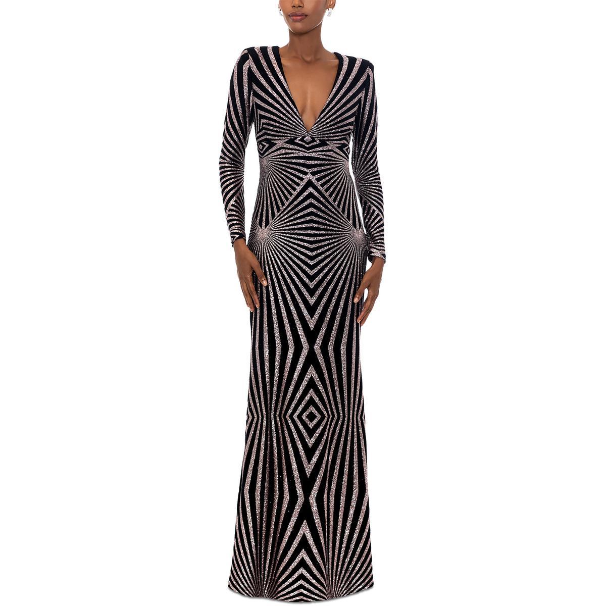Betsy & Adam Glitter Padded Shoulder Evening Dress in Black | Lyst