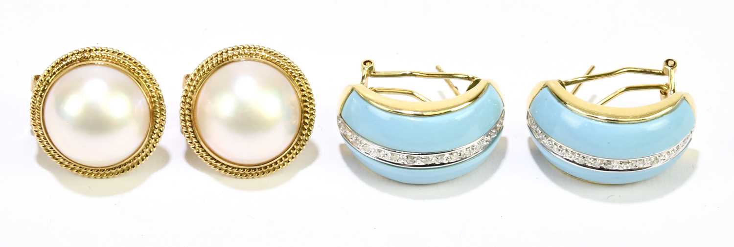 Lot 1500 - A pair of 9ct and mabe pearl earrings,