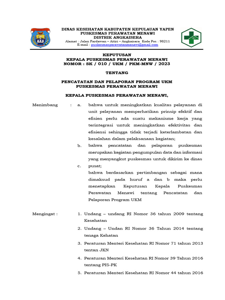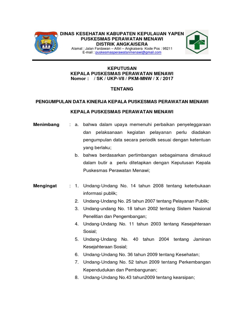 Pengumpulan Data Kinerja Puskesmas Menawi | PDF | Pengelolaan Keuangan ...