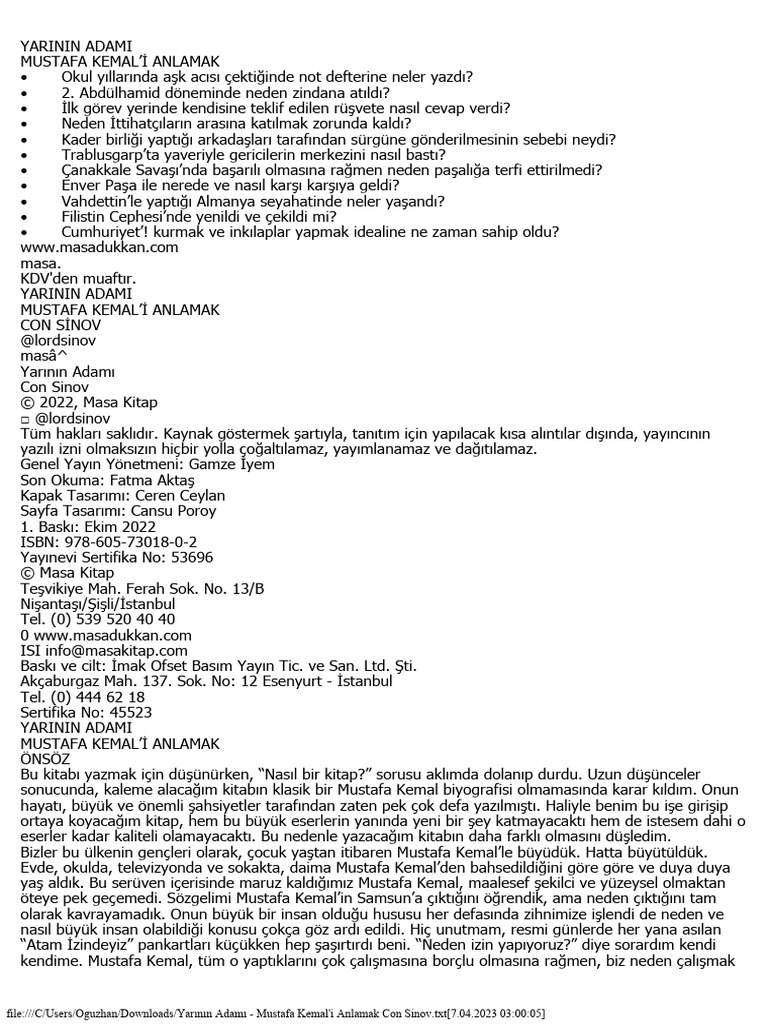 Yarnn Adam - Mustafa Kemali Anlamak Con Sinov-1 | PDF