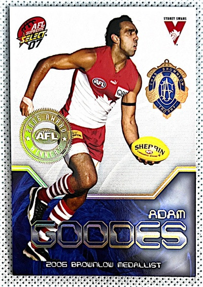 2007 AFL Supreme Series ADAM GOODES Sydney Swans Brownlow Medallist Card