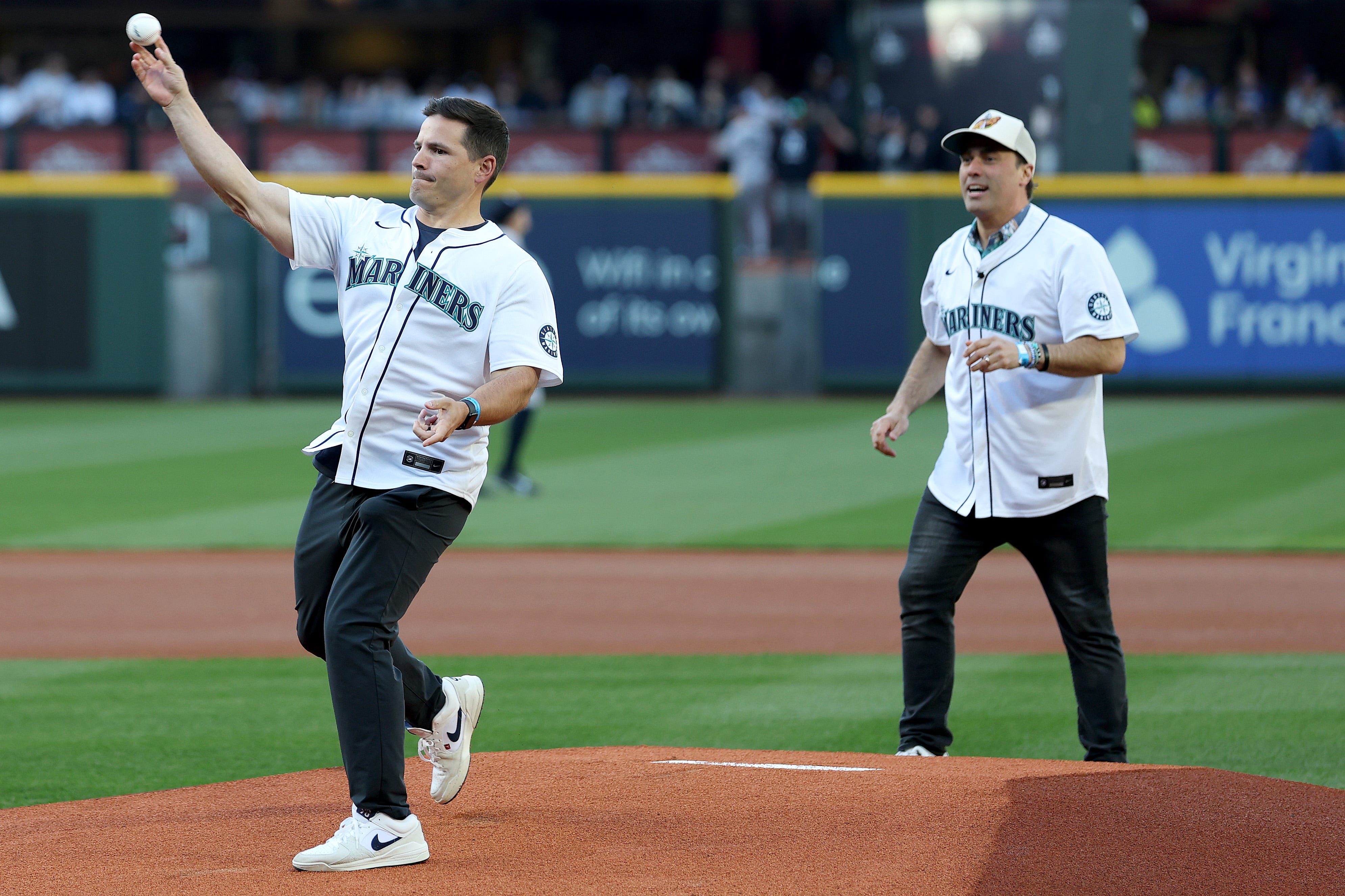 Mike Macdonald and Adam Ray threw out the first pitch at the Mariners ...