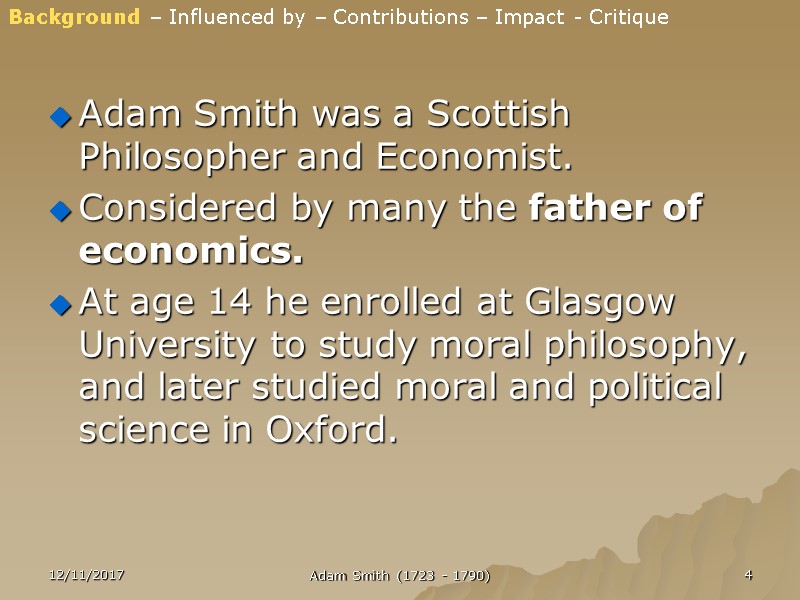 PPT - Adam Smith (1723-1790) PowerPoint Presentation, free download ...