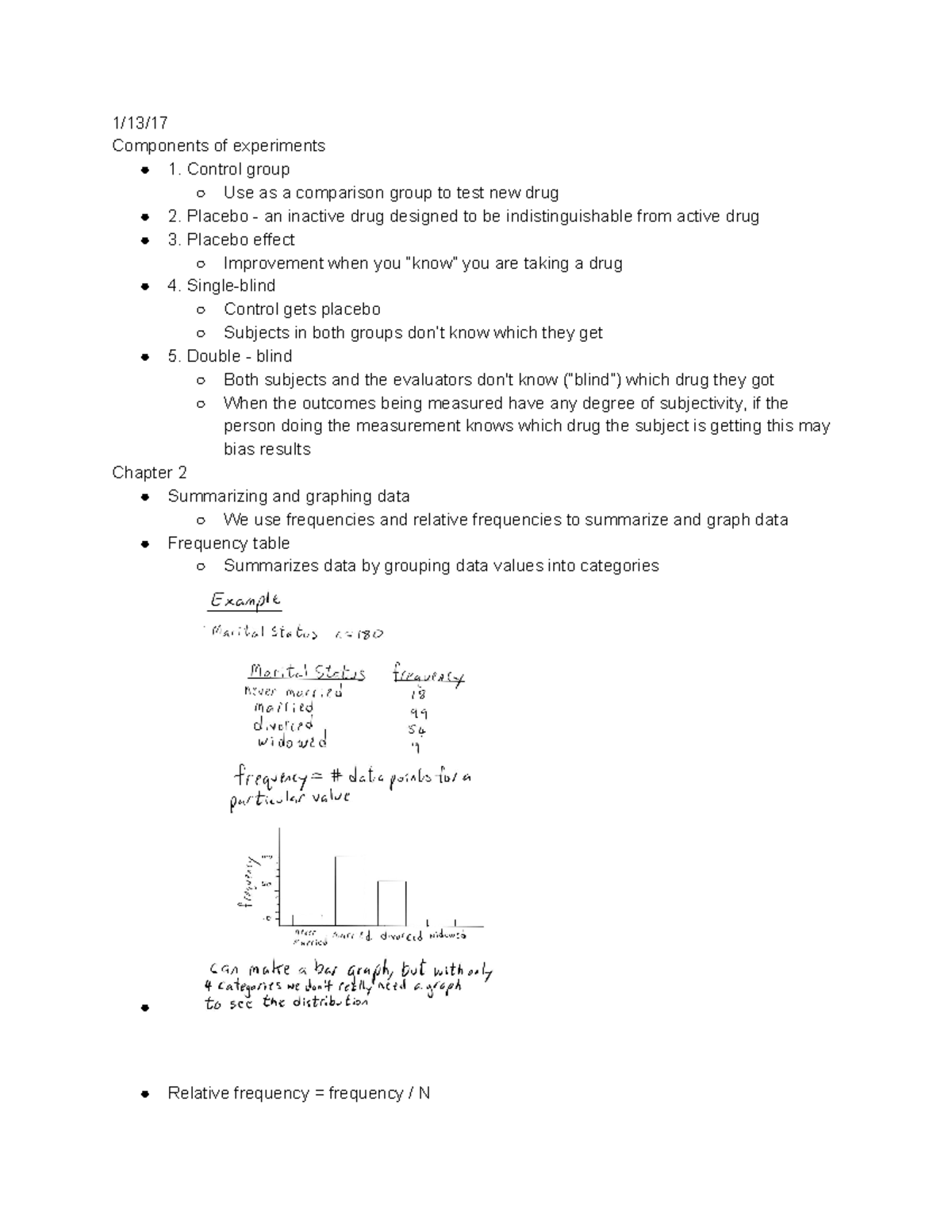 Stat 13 lecture 3 - 1/13/ Components of experiments 1. Control group ...