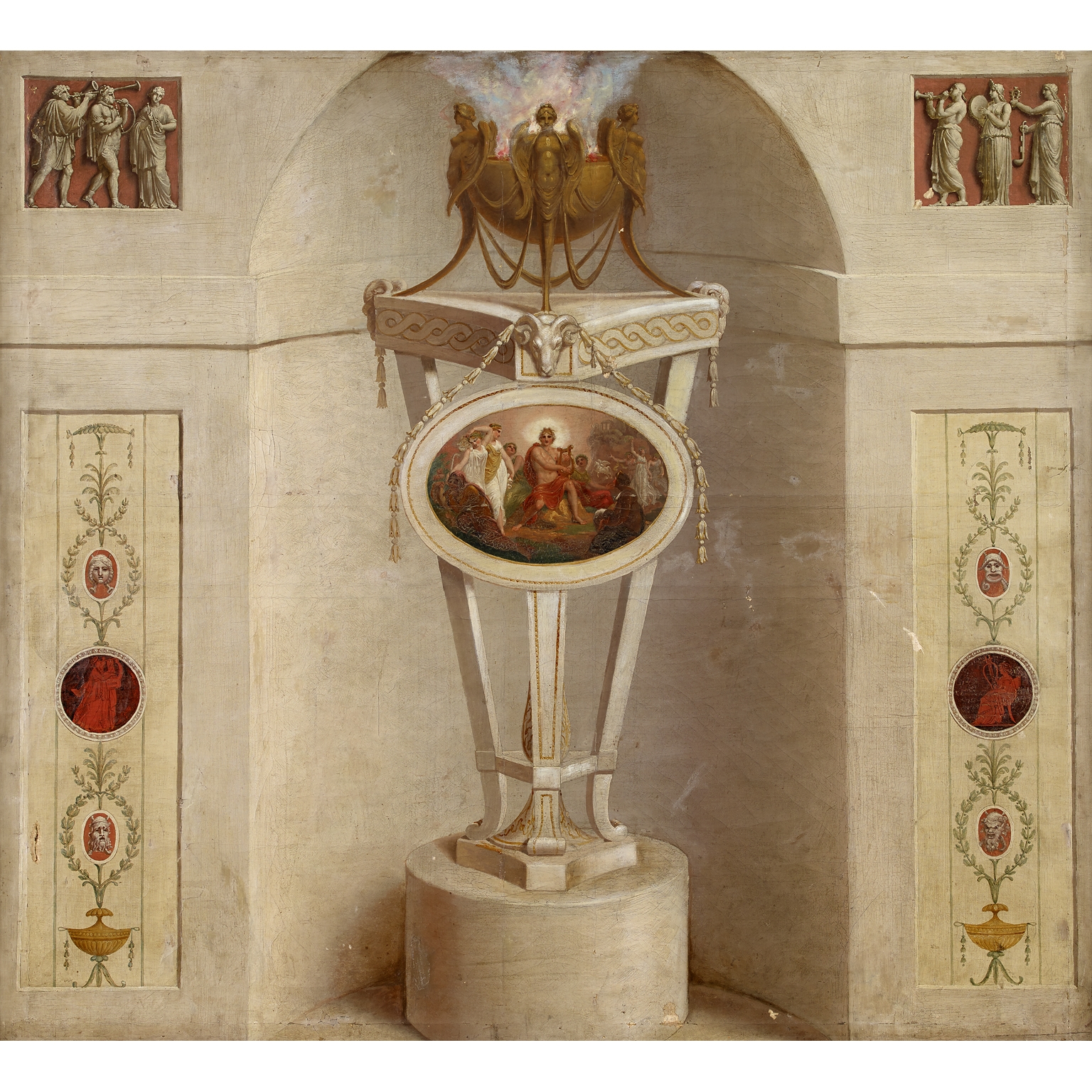 Robert Adam Style Painted Interior Architectural Panel, Framed For Sale ...
