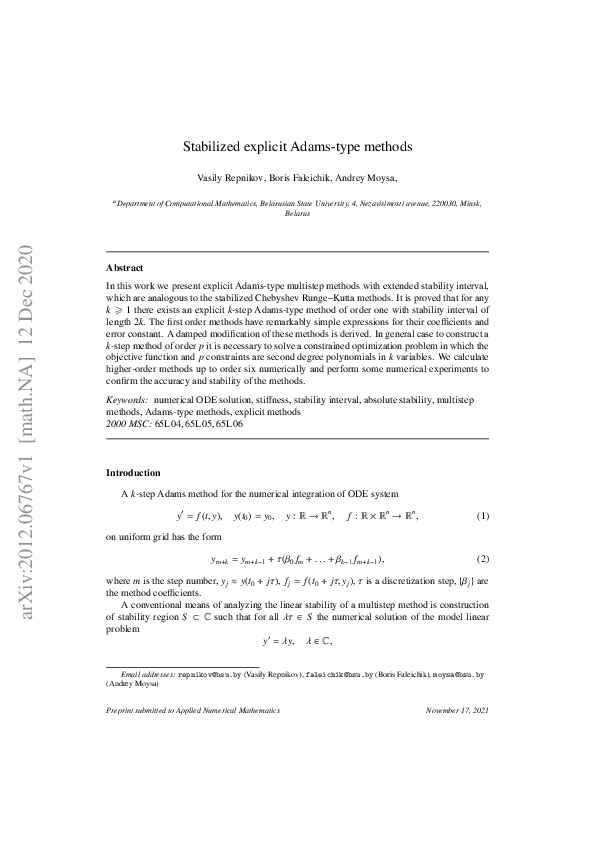(PDF) Implementing Adams Methods with Preassigned Stepsize Ratios