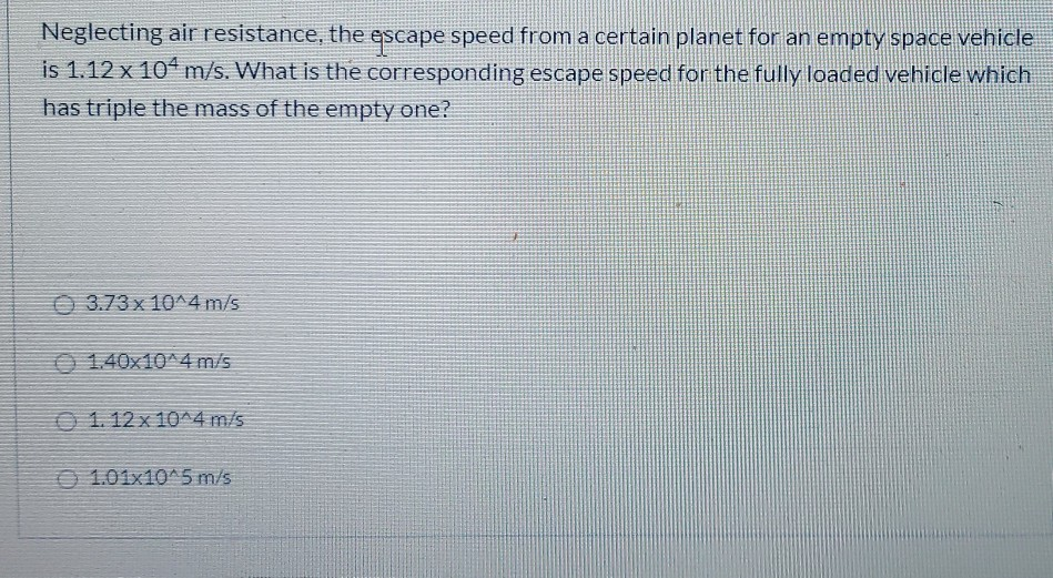 Solved Neglecting air resistance, the escape speed from a | Chegg.com