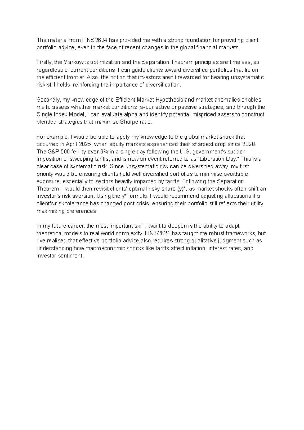 FINS2624 Reflection: Adapting Theory to Real-World Portfolio Advice ...