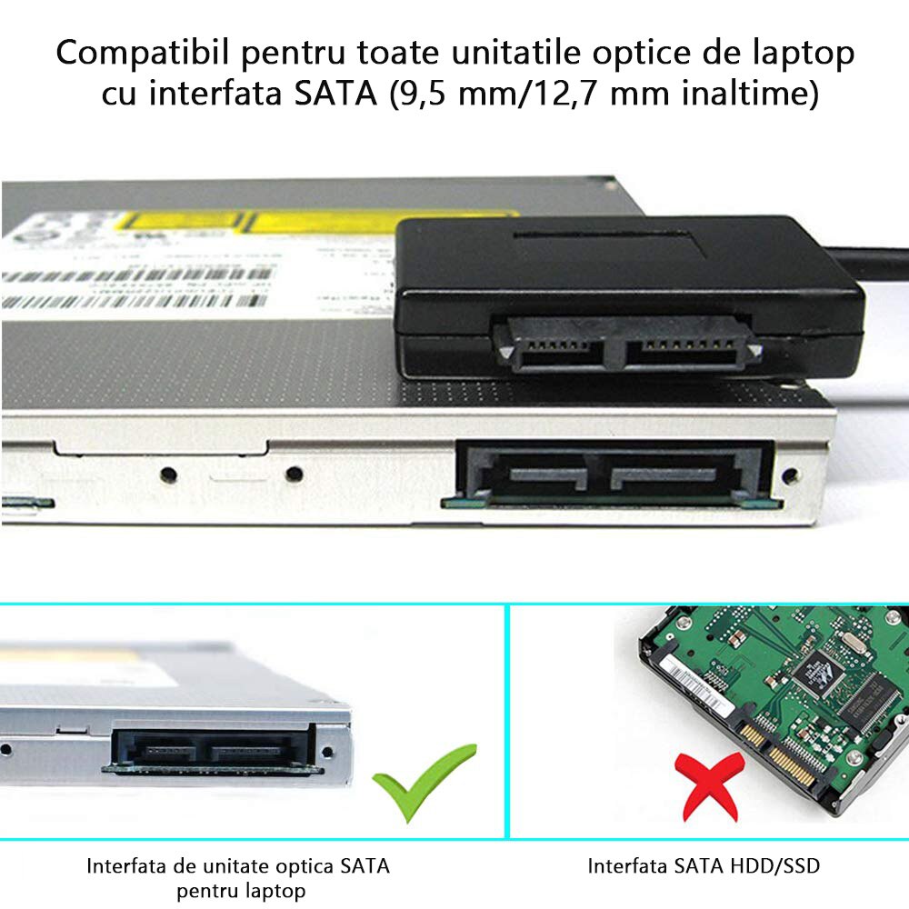 Adaptor USB la SATA 13 pini, Pentru HDD/SSD, Plug and play, Vaxiuja ...