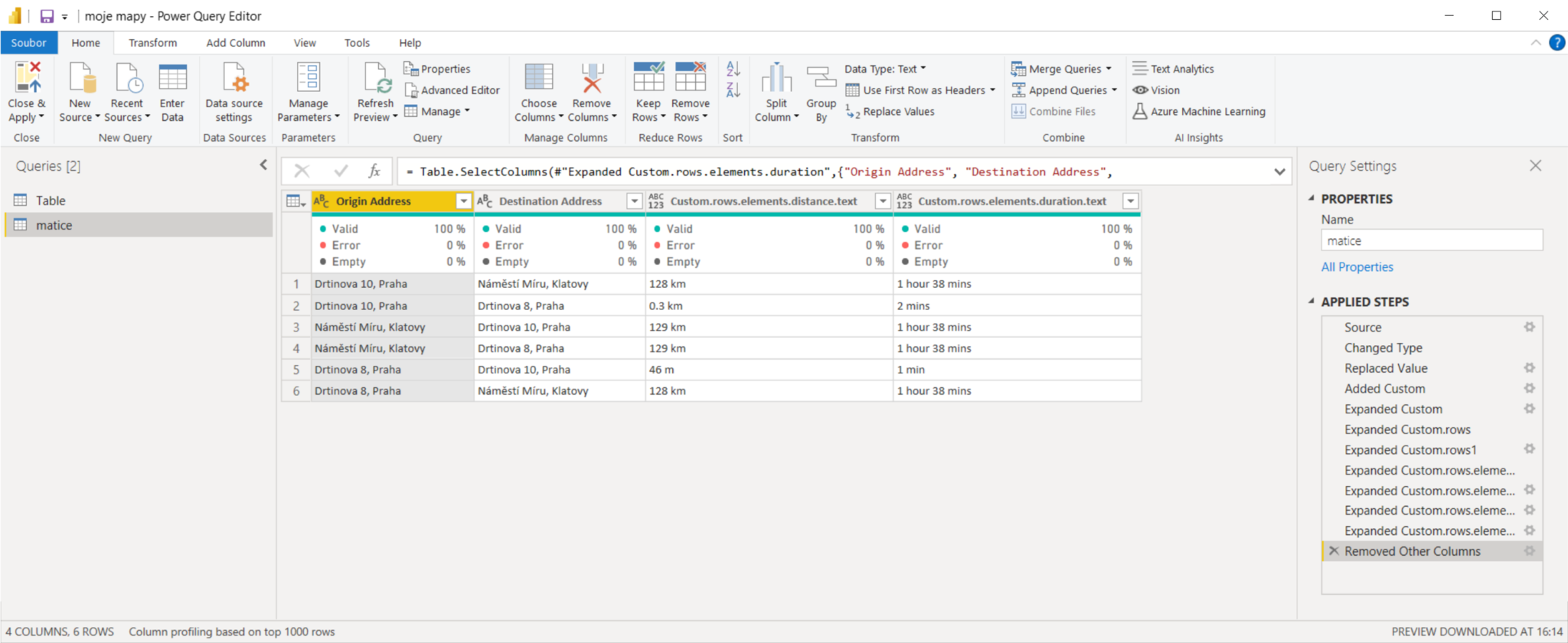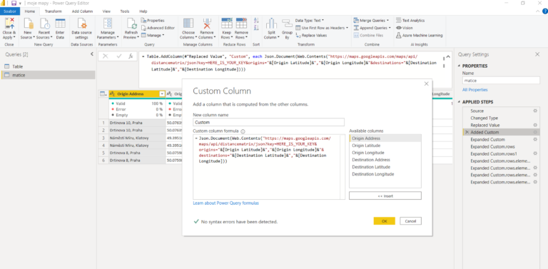 Power Query – get the distance between two places using Google API ...