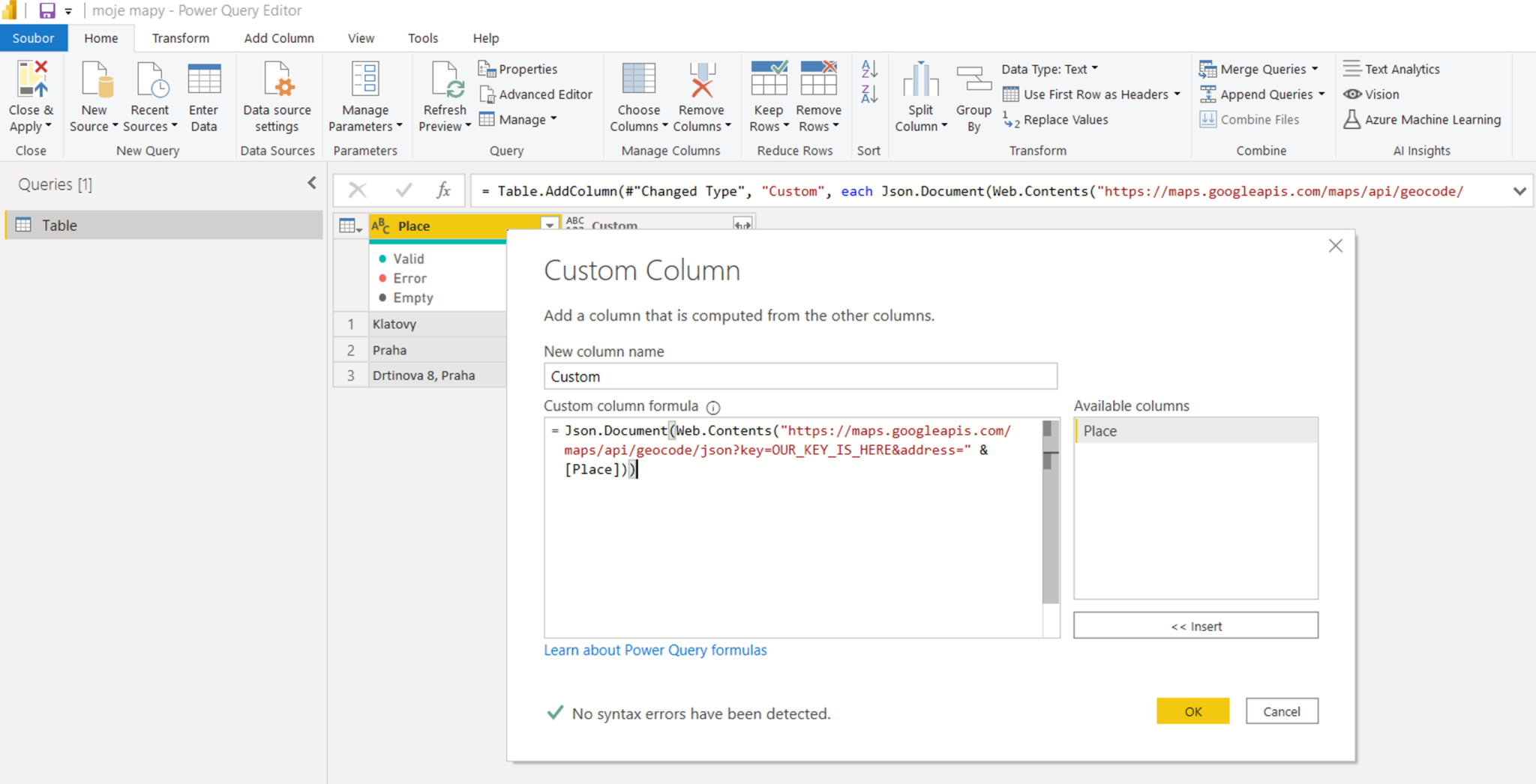 Power Query – get GPS info for places, using Google API – Trainings ...