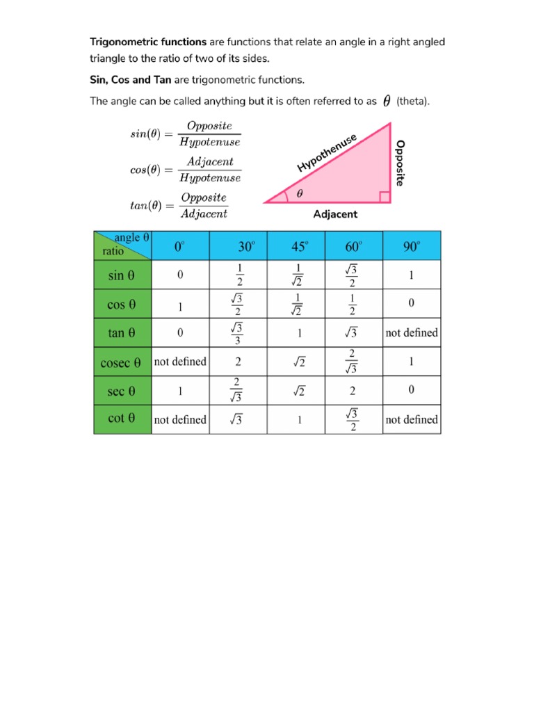 TRIGONOMETRY TABLE - Mathematics - Notes - Teachmint