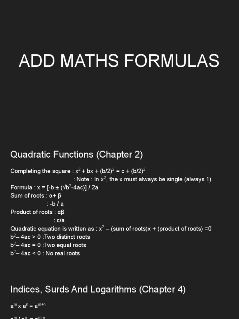 Igcse Add Maths Formulae - Additional Mathematics Formula that are ...