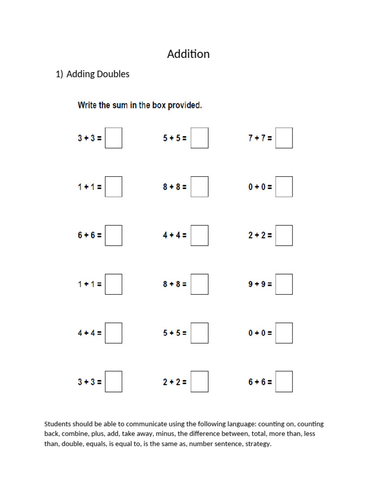 Teaching Addition with Doubles | PDF