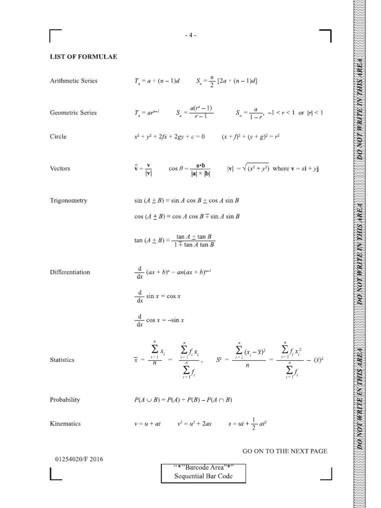 Add Maths Formula Sheet | PDF