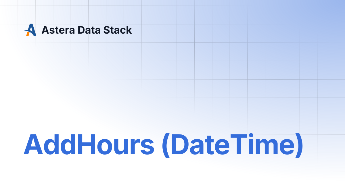 AddHours (DateTime) | Version 6 | Astera Data Stack