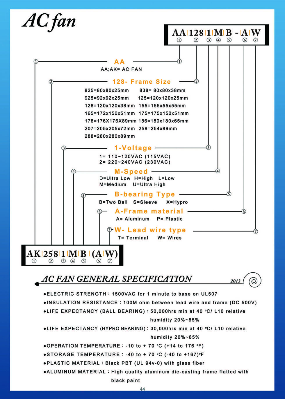 ADDA AA8381HB-AW AC 110V 0.13A / 120V 0.10A 2 Wires Axial Cooling Fan ...