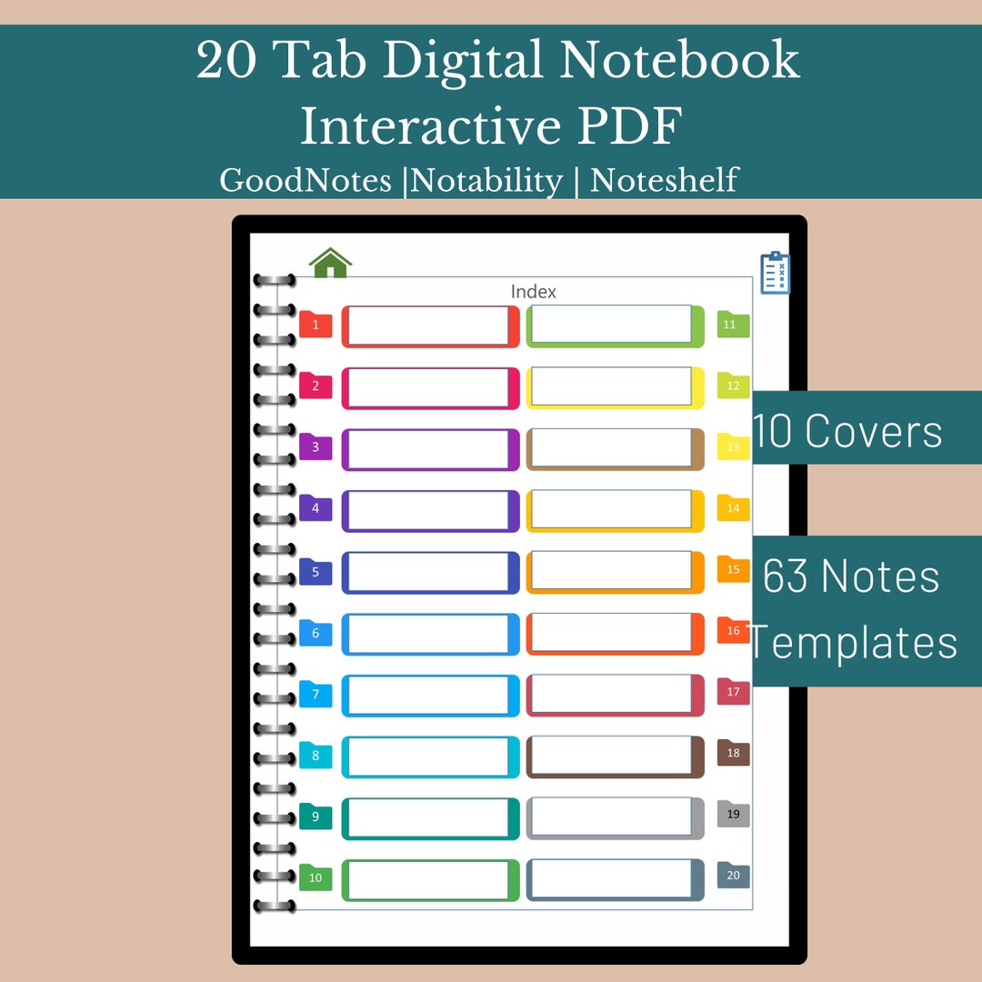 20-tab Digital Notebook: Interactive PDF With 63 Page Templates ...