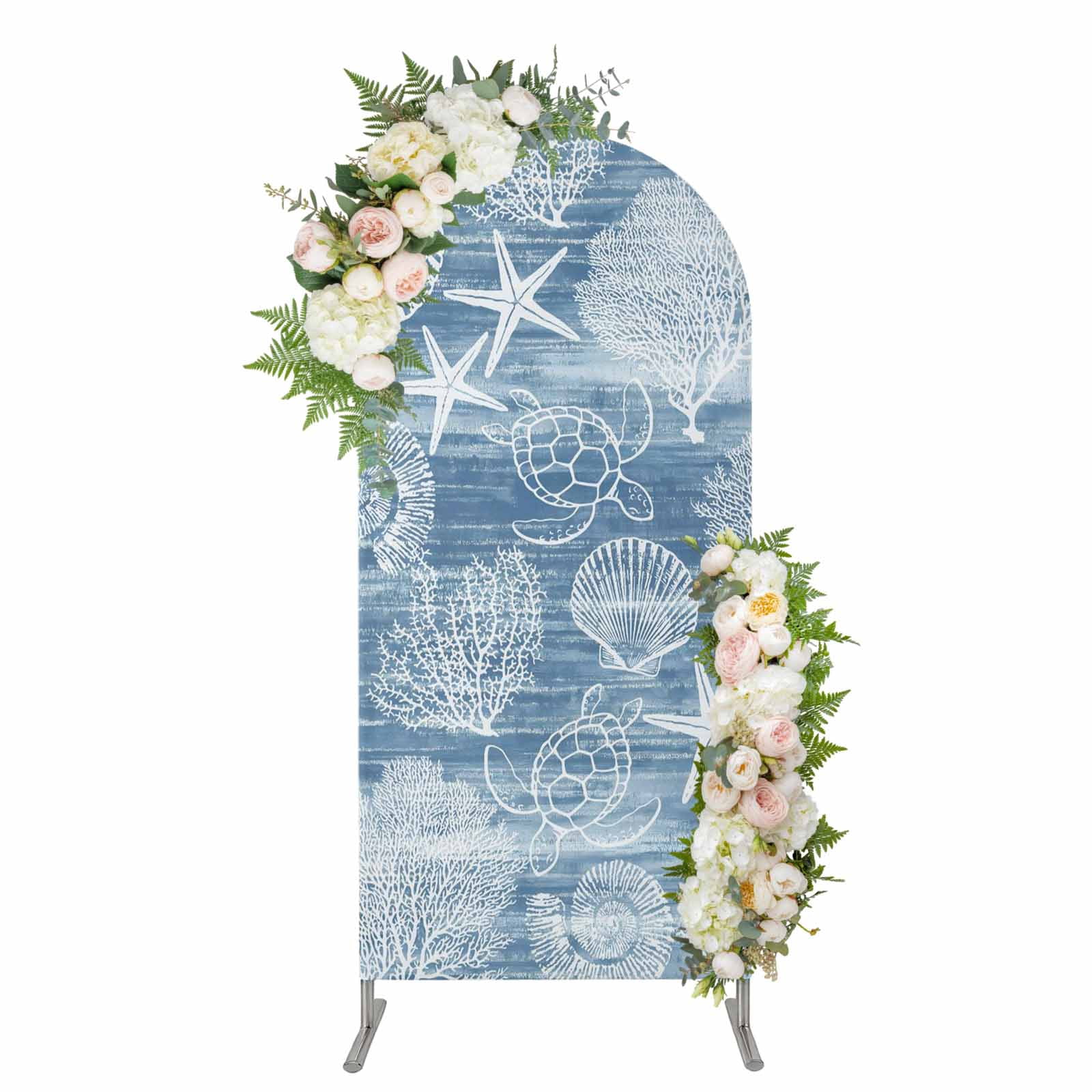 Blue Coastal Arch Backdrop Cover 6.6FT, Nautical Coral Starfish Shell ...